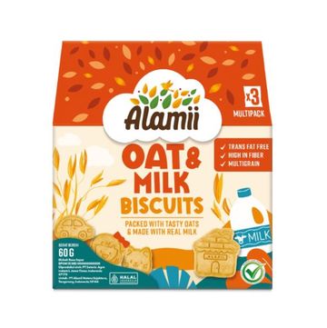 Alamii Multigrain Biscuits - Camilan Snack Biskuit untuk Anak (1 regular pack isi 3 single serve pack x 20g) Kenapa Alamii Multigrain Biscuits? * Menggunakan Oats dari Australia * High in Fiber * No Preservatives, No Artificial Coloring * Free from Trans Fats * Single Serving Packs - perfect for on-the-go & fits in lunch boxes * BPOM & Halal Certified