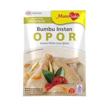Bumbu Opor MamaSuka 16 gram adalah bumbu instan siap pakai yang diracik dari rempah-rempah alami berkualitas, memberikan cita rasa khas opor yang gurih dan lezat. Cocok digunakan untuk memasak opor ayam, telur, atau tahu dengan praktis tanpa perlu menambahkan bumbu lain. Produk ini bebas dari MSG, pewarna, dan pengawet buatan, serta telah bersertifikat halal, menjadikannya aman dikonsumsi oleh seluruh anggota keluarga.