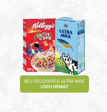 Terdiri dari Kelloggs Kelloggs Froot Loops Sereal 300 gram & Ultra Milk UHT Full Cream 1 liter