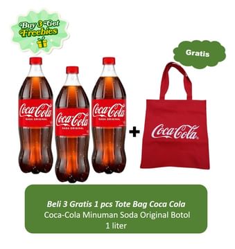 Jual Coca-Cola Minuman Soda Original Botol 1 liter x 3 + Free Tote Bag Coca Cola | Sayurbox