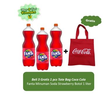 Jual Fanta Minuman Soda Strawberry Botol 1 liter x 3 + Free Tote Bag Coca Cola | Sayurbox