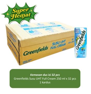 Jual Kemasan Dus - Greenfields Susu UHT Full Cream 250 ml x 32 pcs 1 kardus | Sayurbox
