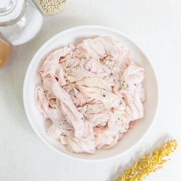 Asal : Lokal Kondisi : Fresh Tidak Beku Saran Penyajian : Goreng Crispy, Sate Kulit dan lain sebagainya. Gramasi Produk : 250 - 275 gr & 500 - 550 gr. Jumlah Potongan : 5 - 7 Pcs (250 gr), 14 - 15 Pcs (500 gr). Kulit Ayam Segar merupakan potongan kulit ayam pilihan yang telah dibersihkan dengan baik dan dikemas higienis untuk menjaga kesegarannya. Memiliki tekstur kenyal dengan kandungan lemak alami yang memberikan cita rasa gurih saat dimasak. Cocok untuk berbagai olahan masakan rumahan maupun kreasi restoran. Kulit ayam ini belum dibumbui, sehingga fleksibel diolah sesuai selera.