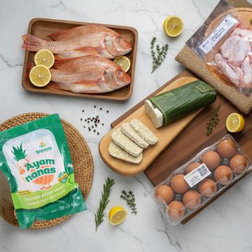 Paket Protein Komplit Seminggu berisi pilihan sumber protein berkualitas yang lengkap dan bergizi untuk memenuhi kebutuhan harian keluarga selama satu minggu. Setiap bahan dipilih dari produk segar Sayurbox yang terjamin mutu dan kesegarannya. Isi paket terdiri dari: Sreeya Ayam Nanas Dada Boneless 200 gram – daging ayam nanas tanpa tulang dengan tekstur empuk dan rendah lemak. Ikan Nila Merah Utuh Bersih 500 gram – ikan siap masak dengan rasa gurih alami. Tempe Value 400–500 gram – sumber protein nabati kaya serat dan nutrisi. Sayurbox Telur Ayam Negeri 10 pcs – telur untuk berbagai kreasi masakan harian. Sayurbox Wing Stick 500 gram – potongan sayap ayam siap olah untuk menu goreng atau panggang. Paket ini praktis dan hemat untuk kebutuhan protein harian keluarga, cocok untuk meal prep, masakan rumah, hingga stok mingguan yang lengkap dan bergizi.