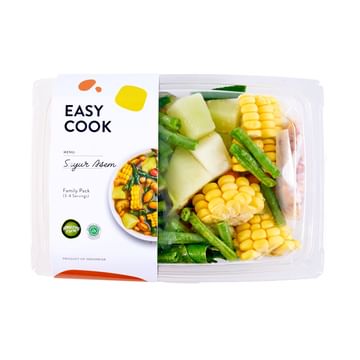 Easy Cook Sayur Asem jadi pilihan praktis untuk menyajikan masakan rumahan. Paket Sayur Asem ini sudah super lengkap dengan potongan kacang panjang hingga jagung. Sayuran yang digunakan dijamin segar dan sudah dilengkapi dengan bumbu penyedap sehingga siap langsung dimasak.