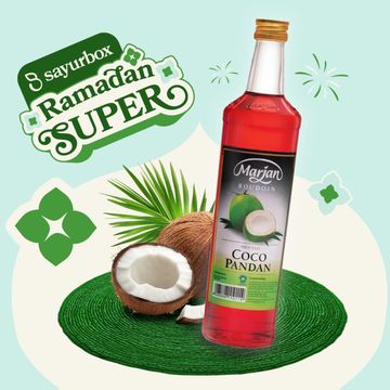 Marjan Boudoin Sirup Cocopandan adalah sirup manis dengan perpaduan rasa kelapa dan pandan yang khas. Terbuat dari gula, air, perisa cocopandan sintetis, ekstrak kelapa (0,06%), ekstrak pandan (0,01%), pengatur keasaman, serta pewarna sintetis seperti E124 dan E102. Sirup ini tidak mengandung pengawet maupun pemanis buatan, menjadikannya pilihan yang aman untuk dikonsumsi. Cocok disajikan sebagai minuman dingin dengan es, atau sebagai campuran dalam berbagai kreasi minuman dan hidangan penutup.
