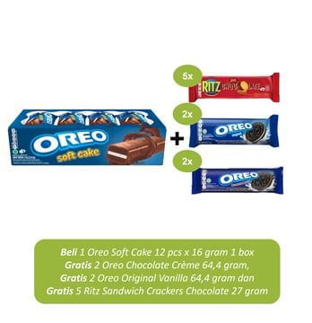 Jual Soft Cake Oreo 12 pcs x 16 gr Free Oreo Chocolate Creme Oreo Vanilla dan Ritz Sandwich Crackers Chocolate | Sayurbox